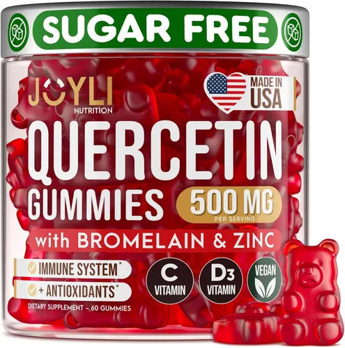 Apoyo inmunológico sin azúcar: las gomitas de quercetina de 500 mg de JOYLI están repletas de bromelina, zinc, vitamina C y vitamina D3, ofreciendo una deliciosa manera de fortalecer tu inmunidad. Sin azúcares añadidos, son una elección perfecta para tu rutina de bienestar Complejo súper quercetina: nuestra innovadora mezcla de quercetina, vitamina D, vitamina C, zinc y bromelina promueve los máximos beneficios. En comparación con el polvo o cápsulas de quercetina, nuestra quercetina masticable es más suave en el estómago y garantiza una absorción óptima Disfruta de las estaciones con comodidad: ¿Cansado de alergias que arruinen tus días? Disfruta del bienestar durante todo el año con deliciosas gomitas de quercetina. El dúo de quercetina y bromelina en nuestras deliciosas gomitas puede ayudar a proteger tu cuerpo contra los desafíos estacionales. Comodidad para todas las estaciones - Libérate de alergias con nuestra deliciosa quercetina masticable. Nuestra fórmula de gomitas de quercetina y bromelina apoya la protección durante todo el año contra la mayoría de los desafíos estacionales. ¡Vive tu vida al máximo, sin molestias! Confianza en la calidad - Tu salud es nuestra prioridad. Ofrecemos suplementos de alta calidad, verificados a fondo para su pureza, eficacia y calidad. Fabricado en los Estados Unidos y cumpliendo con los estrictos estándares de fabricación cGMP, ¡ofrecemos nada más que lo mejor!