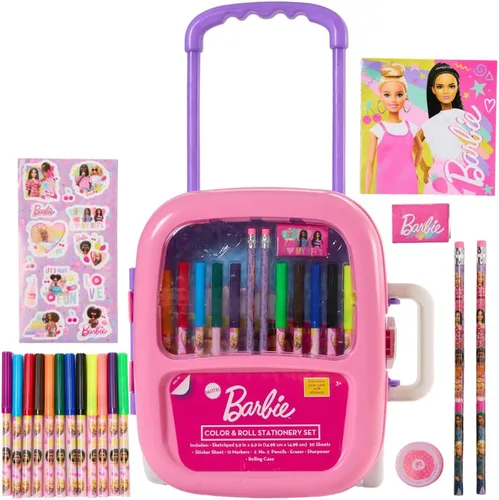 JUEGO DE ACTIVIDADES DE BARBIE – Este set de papelería incluye un estuche de transporte de plástico rodante, una libreta de bocetos de 20 hojas, 12 marcadores, 2 núm. 2 lápices, goma de borrar y sacapuntas SUMINISTROS DE ARTE DE BARBIE - Todos los suministros de arte que los niños necesitan están incluidos en este divertido set de actividades. Pueden colorear, dibujar, pegar pegatinas y decorar la funda de transporte que se puede sostener en cualquiera de los extremos con la tracción retráctil o la manija lateral. UNA GRAN ACTIVIDAD DE ARTE DE VIAJE PARA NIÑOS - ¡Como todo viene empacado en una práctica funda de transporte, los niños pueden llevar este juego de arte a cualquier lugar! Incluso mantiene todos los suministros contenidos y organizados en las habitaciones de los niños. Un regalo perfecto para niños mayores de 3 años que aman a Barbie: ¿conoces a un niño que ama las muñecas Barbie? ¡Este es un gran regalo para fiestas temáticas de cumpleaños, o para días festivos, Navidad, Pascua - ¡o en cualquier momento!
