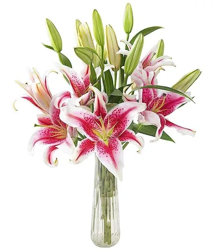El ramo incluye: 5 lirios Stargazer rosa Barbie con jarrón Tu lirio recién cortado se envía en forma de brote para una vida óptima en el florero; las flores se abrirán en 2-3 días, como se muestra en la foto del producto. No todos los brotes de Lily florecen. Las flores se enviarán de forma anónima a menos que marque la casilla "ESTO ES UN REGALO" en su carrito o "AÑADIR UN RECIBO DE REGALO" al finalizar la compra – FIRMA TU NOMBRE PARA QUE SABEN QUIÉN LO ENVIÓ ENVÍO GRATUITO DE LA NOCHE: Para conseguirlo al día siguiente, ordene antes de las 12 PM EST entre el lunes y el jueves. No hay entregas sábados, domingos o lunes. El juego de lirio recién cortado es el regalo o decoración perfecto para tu hogar u oficina. Regala como regalos o guárdalos para ti mismo