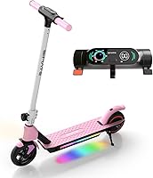 SIMATE Electric Scooter for Kids 6-14, e Kick Scooter with LED Display and Colorful Lights, Adjustable Height and Foldable, Double Brake, Gifts for