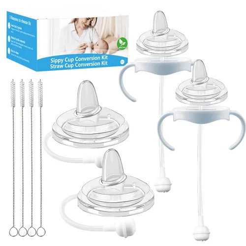 El kit incluye 4 tetinas de silicona suave, 4 accesorios de popote con peso, 2 asas de botella, 4 estuches de almacenamiento y 4 cepillos de limpieza para popotes. El chupete cuenta con un eficiente sistema anticólicos, diseñado para reducir la cantidad de aire ingerido, minimizando así la flatulencia y las molestias, proporcionando a tu bebé una experiencia de alimentación tranquila. El accesorio de popote con peso permite que tu bebé beba en cualquier ángulo, promoviendo la autoalimentación y la independencia. Además, las asas de biberón incluidas hacen que sea fácil para tu bebé sostener su propia taza para beber. El kit de conversión de taza para sorber está hecho de silicona de grado alimenticio, por lo que es completamente libre de BPA, ftalatos y plomo. La seguridad y el bienestar de tu bebé son nuestras principales prioridades. Transición sin esfuerzo del biberón a la taza para beber: facilita el destete con nuestro kit de conversión de sorbos, diseñado compatible con biberones naturales y botellas de vidrio Philips Avent. No hay necesidad de comprar tazas nuevas, simplemente reemplace la tetina del biberón y deje que su bebé haga la transición a su propio ritmo.