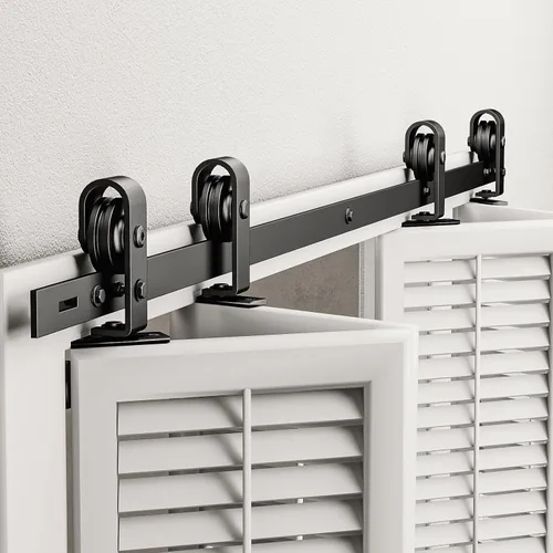 Kit de herrajes para puertas de granero plegables de 76 pulgadas para 4 puertas, kit de herrajes para puertas corredizas de granero plegables y