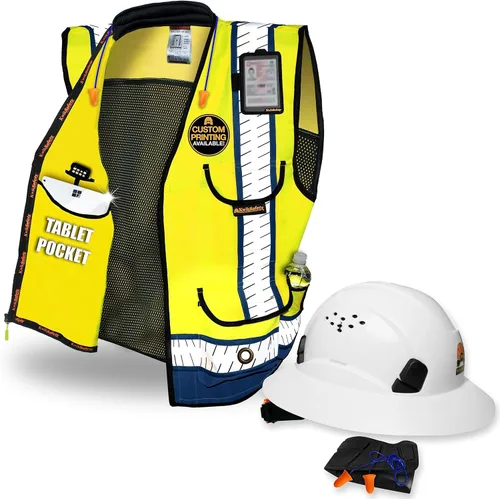10 bolsillos de lujo. Características del chaleco reflectante de alta calidad: chaleco de construcción duradera para hombre que incluye: (1) bolsillo transparente desmontable para identificación, (4) bolsillos delanteros grandes de gancho y bucle, (1) bolsillo trasero (19 x 19 pulgadas) con cremallera lo suficientemente grande como para guardar tabletas/portapapeles, etc. Chalecos de seguridad para hombre con (1) mediano y (1) bolsillo interior grande de gancho y bucle, (1) bolsillo interior grande con cremallera para un iPad/tableta, (1) bolsillo lateral que puede llevar una botella de 16 onzas o una pequeña radio/walkie talkie, (2) pestañas de micrófono y (2) ojales para cinta de encuesta. Chalecos reflectantes de utilidad duraderos: chaleco de seguridad resistente para hombres hecho de 100% poliéster de calidad tejido cosido hiviz amarillo fluorescente neón y tela de chaleco de seguridad naranja. Chaleco de seguridad reflectante de gran ajuste y cierre frontal de cremallera fuerte con lengüeta de tirador. El mejor cuello acolchado para brindar comodidad a largos días de trabajo. Rayas de contraste negro de dos tonos con ribete naranja de 1 pulgada y 2 pulgadas de radián plateado retro hi vis chaleco reflector bandas reflectantes ofrecen una mayor visibilidad mejorada de 360° y movilidad noche/día. Sombrero duro ventilado | Sistema de refrigeración de lujo: casco de seguridad, construcción de casco duro que cuenta con 18 rejillas de ventilación para una ventilación premium. Estos cascos de ala completa vienen equipados con (1) perilla de trinquete de casco fácil de girar, moderna y ajustable, (1) conector de correa de barbilla ajustable para casco duro y (1) suspensión de correa de casco de elevación de 6 puntos para máxima comodidad y seguridad durante todo el día de trabajo. El estilo de gorra de casco completo incluye tapones para los oídos y banda extra dura para el sudor Sombreros duros resistentes a los impactos: cascos de seguridad duraderos aprobados por Osha, moldeados de material termoplástico ABS resistente (no fibra de vidrio). Casco duro ligero de perfil bajo, talla única que se adapta a la mayoría de adultos: 20.5 in (20.5 pulgadas) - 24.8 in (25 pulgadas). Disponible en color blanco (no amarillo/negro/sombrero duro de fibra de carbono/carabina/grafito). Combina perfectamente con tus accesorios de casco como calcomanías/calcomanías reflectoras, parasol para el cuello/visera de casco duro, correas de barbilla, inserto ligero acolchado para casco (no tapa de golpes). La seguridad que necesitas, el estilo que quieres: los productos KwikSafety están orgullosamente diseñados y enviados desde Charlotte, Carolina del Norte, Estados Unidos. Nuestro equipo con sede en Charlotte responderá rápidamente todas y cada una de sus preguntas e inquietudes sobre su pedido en inglés o español, si habla Español (cascos construccion, casco seguridad, cascos blancos construccion). Los productos KwikSafety son productos de seguridad premium diseñados por estadounidenses con nivel de calidad American Standard. Si tienes un problema, tenemos una solución para ti.