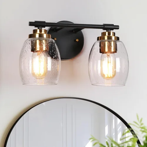 Pregunta sugerida sobre Lámparas de tocador de baño, luces de tocador de oro negro con pantallas de vidrio sembrado, 2 luces, moderno, granja, baño, aplique de pared sobre ¿Este producto sí me sirve para lo que necesito?