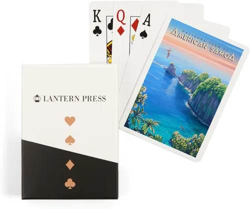 Naipes de alta calidad de Lantern Press, con ilustraciones únicas del Parque Nacional de Samoa Americana, pintura al óleo (52 cartas, baraja de cartas de tamaño póquer con comodines). -52 cartas de póquer de tamaño estándar, con Jokers. -Impreso en papel de calidad utilizando una prensa de impresión digital de alta gama. - Revestimiento UV mate en las cartas. - Empaquetado en caja de papel para almacenamiento. - Fabricado en los Estados Unidos. Lantern Press es una empresa de arte dinámica que se especializa en las imágenes líderes del mundo. Nuestra colección incluye obras originales creadas por nuestro equipo de arte interno, fotografía, tendencias de decoración para el hogar y la oficina, arte vintage y más. Su apoyo nos permite seguir haciendo lo que amamos: crear arte hermoso.