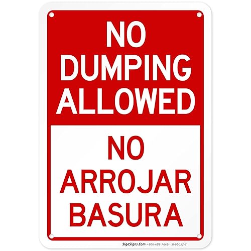 Pregunta sugerida sobre Letrero bilingüe de No Dumping Allowed No Arrojar Basura, 10 x 7 pulgadas, aluminio 040 libre de óxido, resistente a la decoloración ¿Este producto sí me sirve para lo que necesito?