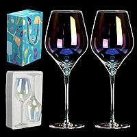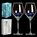 Juego de 2 copas de vino sopladas a mano de 22 onzas, copas de vino blanco y tinto. Copas iridiscentes de cristal premium sin plomo. Ligeras para la