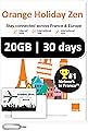 Orange Holiday Europe Prepaid Sim 20GB Internet Data | 30 días de uso | Se permite la conexión de datos | 30 minutos y 200 SMS de Europa a cualquier