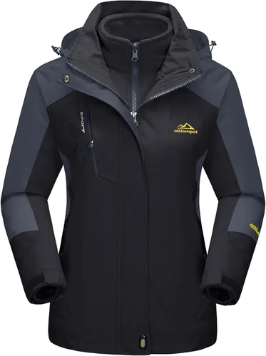 MAGCOMSEN - Chamarra de esquí 3 en 1 para mujer, con forro interior de vellón, chamarra tipo parca resistente al viento e impermeable para el