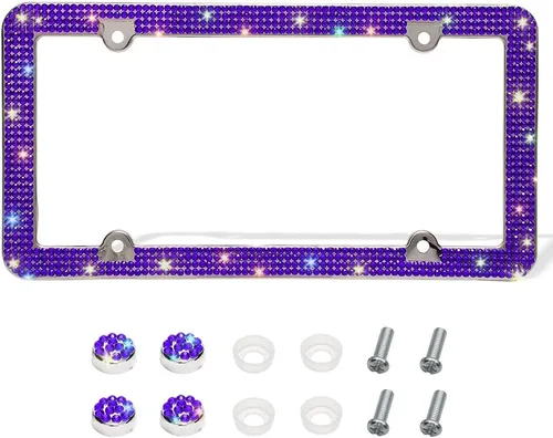 El marco de matrícula brillante añade más cumplidos a tu vida, ya que tiene cientos de diamantes de imitación de cristal cuidadosamente seleccionados. Es muy atractivo y deslumbrante al sol y bajo la luz. Los marcos de matrícula con purpurina hacen que tu automóvil sea más hermoso Hecho de acero inoxidable duradero y resistente al óxido, y el marco de segunda generación tiene un borde esmerilado que evita que el vehículo se raye y que se corten las manos durante la instalación El marco para placa de matrícula de diamantes de imitación está diseñado para adaptarse a todas las placas de matrícula de tamaño estándar de 12.25 x 6.25 pulgadas en los Estados Unidos y Canadá. Nuevo diseño, el marco de matrícula especialmente diseñado no oscurecerá el nombre de tu estado El marco para matrícula impermeable utiliza una mezcla especial de pegamento impermeable, los diamantes de imitación son difíciles de quitar, muy seguro. Resistirá los lavados del automóvil y las condiciones climáticas, nunca se deslustrará Fácil de instalar. El paquete contiene 1 marco de placa de matrícula con brillantes, 4 tornillos a juego, 4 tapas de tornillos a juego, 4 arandelas, 1 destornillador, 1 calcomanía de emblema de anillo con brillantes. El mini destornillador de metal te ayudará a instalarlo con más facilidad