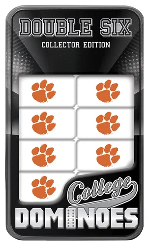 Con licencia oficial, los dominó de Masterpieces NCAA Clemson Tigers son perfectos para cualquier fanático de los deportes. Este juego de dominó de Clemson Tigers de Doble-Sixes viene en una caja de lata coleccionable e incluye 28 fichas de dominó de resina con un logotipo del equipo impreso en la parte posterior de cada uno. Las instrucciones de dominó también están incluidas. Este juego de dominó deportivo es perfecto para todos los fanáticos del deporte. Lleva un poco de orgullo a casa con la compra de este juego de dominó único