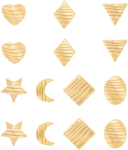 Mega Pet 28 colgantes de acero inoxidable 304 texturizados con forma de corazón, forma de rombo ovalado, triángulo, de acero inoxidable, estrella de