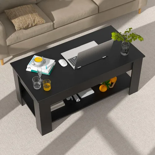 Diseño elevable: la mesa de esta mesa auxiliar se puede elevar sin esfuerzo a una altura cómoda para crear un espacio de trabajo espacioso o superficie de comedor mientras estás sentado en el sofá. El mecanismo de metal de alta calidad permite que la mesa se levante o baje fácilmente y sin ruido. Espacio de almacenamiento considerable: levanta la mesa y revela un compartimento oculto, ayuda a almacenar artículos de uso frecuente como computadoras portátiles, ajedrez, mandos a distancia, controladores de juego y similares debajo de la parte superior cuando no estén en uso, manteniéndolos a mano y libres de suciedad. Dos estantes inferiores divididos pueden contener mantas o libros. Mesa multifuncional: esta práctica mesa es definitivamente una inversión digna para cualquier espacio limitado como pequeños apartamentos, dormitorios y estudios. Esta pieza no es solo una mesa de café, sino que también sirve perfectamente como mesa de comedor temporal o escritorio de computadora con una mesa flotante elevada. Montaje sin complicaciones: viene con todas las herramientas necesarias y un manual de instrucciones ilustrado para ayudarte a configurar esta mesa auxiliar elevable rápidamente y sin dificultades. Con una construcción sólida y materiales seleccionados, esta mesa auxiliar no se tambalea una vez montada correctamente. Resistente al agua y a los arañazos: fabricada con materiales impermeables, esta mesa auxiliar soporta derrames y humedad, asegurando un fácil mantenimiento. La superficie antiarañazos resiste el uso diario, preservando el aspecto impecable de la mesa auxiliar elevadora. Disfruta de una vida sin preocupaciones con una mesa de centro negra que es resistente a los contratiempos comunes del hogar.