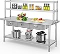 YITAHOME NSF Mesa de acero inoxidable con estantes y cajones, mesa de trabajo de 72 x 24 pulgadas con estante de 72 x 12 pulgadas y 3 cajones,