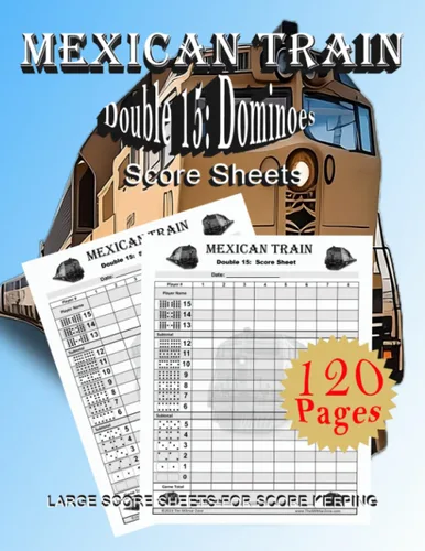 Mexican Train Double 15 Dominoes Score Sheets Cool Book, Dominoes Score Sheets Game Book, 8.5" x 11, 120 Pages, Great Fun for all Ages.