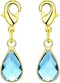 2 cuentas colgantes con clip de Adabele de marzo azul aguamarina con piedra natal, cuentas de gota resistentes al deslustre, cierre de langosta
