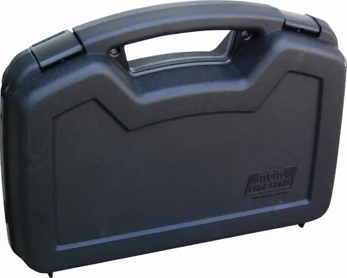 Dimensiones exteriores: 13.1" x 9.7" x 3.2"; Dimensiones interiores: 12.5" x 8.1" x 3.0" Para revólveres automáticos y con cañones de 6 pulgadas o menos Cierre a presión; mango grande y cómodo Polipropileno resistente con bonito acabado texturizado Acolchado de espuma gruesa y pestañas de doble candado; fabricado en Estados Unidos