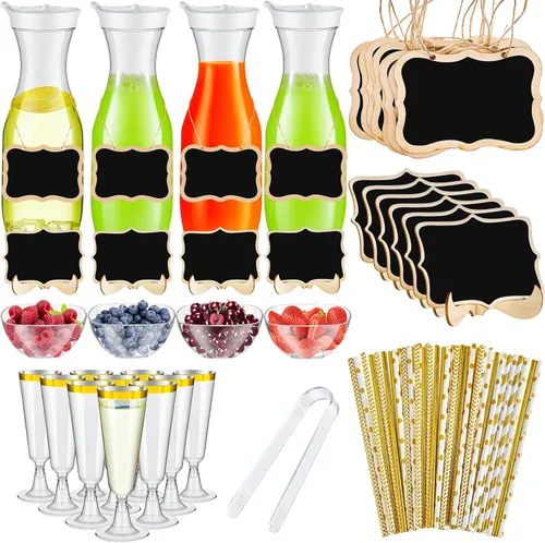 Mumufy 82 piezas de suministros para bar de mimosa, jarra de agua de plástico de 34 onzas con tapas, copas de champán de plástico, jarras para