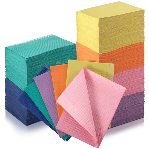 Baberos dentales a granel: recibirás 750 piezas de baberos dentales; Babero para tatuajes impermeable de 3 capas: la lámina está hecha con 2 capas de papel y 1 capa de polietileno, este diseño permite que los baberos proporcionen la máxima protección; Cantidad suficiente para uso diario que puede aplicarse durante mucho tiempo Baberos impermeables: nuestros baberos dentales tienen un respaldo de película de polímero plástico que evita que el líquido y el agua se escapen y contaminen otras superficies, no gotean y no dejan residuos en tu ropa Proporciona protección: estos coloridos baberos desechables son lo suficientemente grandes como para usar en una variedad de pacientes; cada babero mide 13 x 18 pulgadas de tamaño para proporcionar cobertura y protección; mantiene tu área de trabajo y ropa limpias y ahorra tiempo de limpieza; cubren eficazmente el área del pecho y el cuello del paciente sin ser incómodo o dejar grandes áreas expuestas Material fiable: nuestra hoja de babero para tatuajes de 3 capas está hecha de tela no tejida, que es duradera, suave, fuerte y resistente a desgarros; estas almohadillas dentales desechables también pueden ser aplicadas por los pacientes para limpiar la piel y mejorar la comodidad del cliente Aplicaciones versátiles: estos baberos también son ideales para clínicas dentales, salones de tatuajes, salones de belleza, maquillaje, cuidado de pestañas, arte de uñas, mascotas, ortodoncia, cubiertas de bandejas, cubiertas de mesa, cuidado de personas mayores, cosmetología y manicura; La almohadilla limpia proporciona un buen espacio de trabajo ya sea que esté en una oficina o en un salón de tatuajes