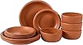 Bloomhouse - Two Time Oprah's Favorite Things Winner - Corsica Clay 12-Piece Stoneware Rustic Reactive Glaze Dinnerware Set - Stackable Plates Bowls