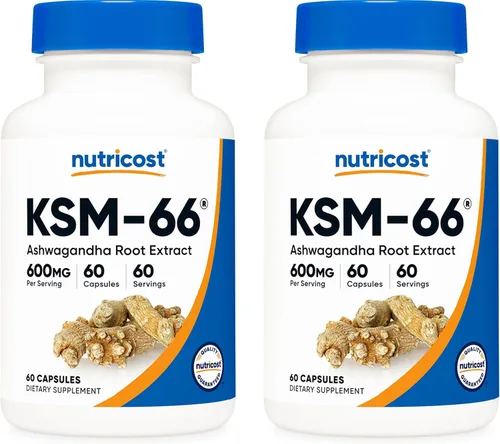 600 mg de extracto de raíz de Ashwagandha KSM-66 por porción (60 porciones) 60 cápsulas vegetales por botella (2 botellas) 5% de Withanolides (30mg por cápsula) BioPerine para una mejor absorción Sin OMG, sin gluten, fabricado en una instalación que cumple con las GMP, registrada por la FDA
