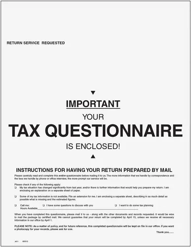 Este organizador de impuestos individual es la herramienta definitiva para realizar múltiples tareas. Específicamente diseñado para devoluciones completadas por correo. Este organizador incluye banderas de alerta únicas para resaltar cuándo se requiere información exacta para evitar problemas con el sistema de coincidencia del IRS. Ahorra dinero en comparación con la impresión y envío de correos organizadores generados por software, y es más fácil de usar para sus clientes. Este producto se envía plano. Tamaño: 8.5" x 3 2/3" Páginas: 3 Enviado: Flat