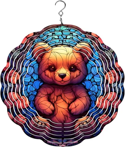 Encuentra la diversión y la alegría viendo al oso de peluche moverse y girar con el viento. Nuestros molinillos de viento están cortados con láser de acero duradero con recubrimiento en polvo para evitar la oxidación y teñidos con una tinta especial con recubrimiento en polvo que les da un acabado de alto brillo. A medida que gira el Wind Spinner, los reflejos proporcionan una ilusión de que la imagen central se expande al anillo exterior del Wind Spinner.