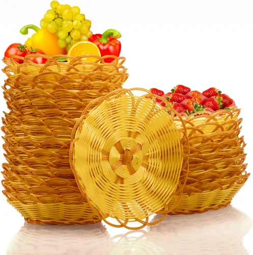 Paquete de 12 cestas de pan tejidas redondas de plástico, cestas de regalo, cesta de frutas de ratán de imitación, cesta de almacenamiento de