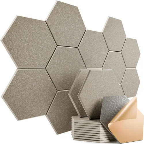Qué cambia: la mayor diferencia frente a otros paneles acústicos del mercado es que los nuestros incluyen autoadhesivo. ¿Todavía estás quitando cinta de las paredes? Si alguna vez probaste nuestros paneles de espuma insonorizante, sabes lo fáciles que son de instalar. La alta densidad es mejor: la densidad de 9.4 lb/ft³ es excelente para absorber sonidos no deseados y reducir ecos, ondas, reverberaciones y ecos flotantes. Además de usar la espuma acústica para reducir el sonido, también puede utilizarse para mejorar la acústica de una habitación, como en un estudio de grabación. Decoración elegante: Estos exclusivos paneles de pared hexagonales insonorizantes tienen un diseño de borde biselado; puedes colgarlos como piezas de arte o acentos decorativos en tu habitación o apartamento. Estos paneles son generalmente bastante ligeros y vienen en una variedad de colores para combinar con tu decoración. Materiales seguros que cubren grandes áreas: Hechos de 100% fibra de poliéster, son ignífugos, sin olor y seguros para respirar y tocar. El paquete de 12 unidades cubre 7.5 pies cuadrados; son fáciles de cortar con un cuchillo para crear diferentes diseños con los paneles individuales o para formar un panel más grande. - - -
