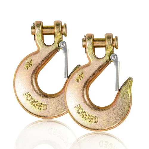 AYAYGD Paquete de 2 ganchos deslizantes de horquilla de 1/2 pulgada con pestillo de seguridad, gancho de cadena de grado 70 resistente para cadena de transporte, gancho de cabrestante, gancho de remolque y gancho de cadena, capacidad de carga de 48,000 libras, gancho de seguridad de pestillo, oro