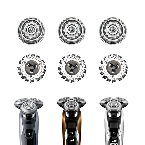 Los cabezales YAFIYGI Norelcoreplacement son capaces de garantizar la máxima calidad, hechos de materiales de alta calidad, cuchillas muy afiladas, sin óxido, resultados de afeitado más duraderos, asegurando un rendimiento duradero y efectivo, muy fácil de reemplazar en pocos minutos para hacer que tu maquinilla de afeitar se vea nueva de nuevo. Cabezales de repuesto norelco9000 Se recomienda reemplazar su cabezal de afeitar SH90 cada 12 meses para obtener los mejores resultados de afeitado. Especificaciones del producto Compatibilidad de producto: Modelos aplicables S9000 S8000 S7000