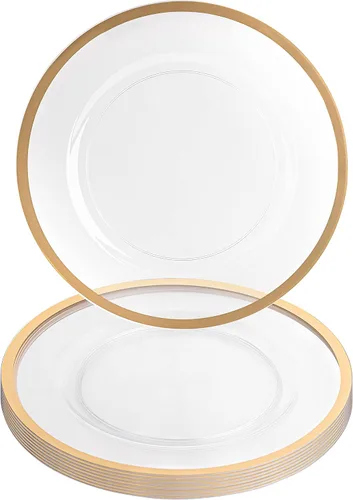 Pregunta sugerida sobre Party Bargains - Bajoplatos de 13 pulgadas (8 unidades) transparentes, borde dorado Bajoplatos desechables de plástico resistente. Bajoplatos ¿Qué incluye exactamente este set?