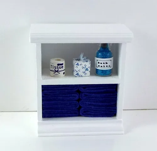 Plaza de la ciudad Miniaturas Casa De Muñecas Muebles Miniatura Pequeño estantería & D Azul Cuarto de baño accesorios