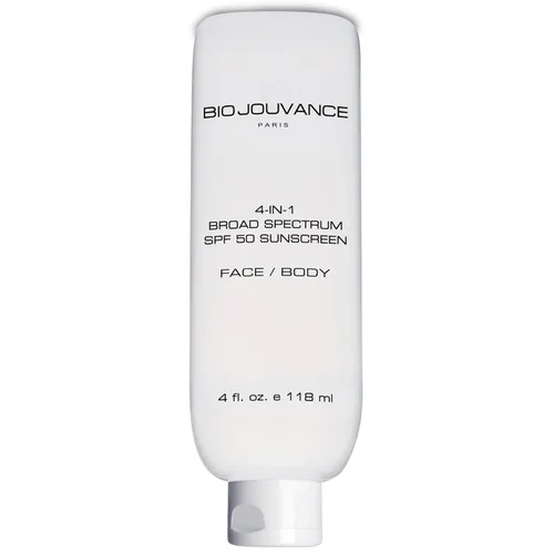 Bio Jouvance Paris Protector solar 4 en 1 SPF 50 UNA & UVB / Vitamina C/Hidratante/Beta Caroteno Este protector solar de amplio espectro con filtros UVA y UVB proporciona una protección óptima contra los rayos dañinos del sol. Es resistente al agua, sin PABA y no aceitoso. Este protector solar único también está enriquecido con vitaminas C y E. Los ingredientes activos están microencapsulados en un Sistema de Entrega Transdérmica conocido como Efficap para garantizar la máxima protección de la piel contra el estrés ambiental. La aplicación de este protector solar multifunción deja la piel hidratada, suave y brillante. Instrucciones: Limpia y tonifica la piel con Bio Jouvance Paris Cleanser and Toner adecuado para tu tipo de piel. Aplique una cantidad generosa de protector solar 4 en 1 SPF 50 en la cara, el cuello, el escote y el cuerpo. Masajea la crema en tu piel con movimientos suaves y circulares. Nota: Bio Jouvance Paris 4 in1 SPF 50, se puede utilizar como base de maquillaje o bajo otras cremas hidratantes. INGREDIENTES: Agua hidrolizada, aceite de palma orgánico, extracto de hoja de aloe barbadensis, ácido hialurónico, betacaroteno, vitamina E, vitamina C, B6, B12, betacaroteno, carbómero, óxido de zinc, fragancias naturales.
