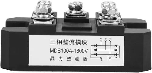 PARA LA RECTIFICACIÓN COMPLETA TRÍFICA: El módulo de diodo de potencia MDS-100A está diseñado para la rectificación completa trifásica, que tiene seis diodos conectados en una configuración de puente trifásico. APLICACIÓN PARA: Este rectificador de puente trifásico se puede utilizar para la entrada de corriente eléctrica del inversor PWM, carga de la batería, etc. CONVENIENTE DE USAR: AC, DC Motor Drive/AVR/Switching - para rectificación trifásica. Estructura de soldadura, excelente ciclo de potencia y características de temperatura CORRIENTE MÁXIMA Y TENSIÓN DE VALOR MÁXIMO: La corriente continua de salida es 100A. El voltaje máximo del valor es de hasta 1,600V. Base de montaje aislada, alta confiabilidad por pasivación de vidrio única. EXELLENTE RENDIMIENTO: Este rectificador de puente es práctico, portátil, muy conveniente de instalar y reparar.