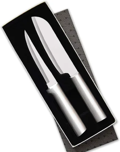 Juego de 2 cuchillos de regalo Cook's Choice: incluye los cuchillos Super Parer y Cook's Utility que combinan forma y función Cuchillas: fabricadas con acero inoxidable de alto carbono T420 para mayor durabilidad y un terreno hueco para una nitidez increíble para retener sus bordes Asas: Construido con asas duraderas aptas para lavavajillas hechas de resina de acero inoxidable negro Usos favoritos: Corta fácilmente la carne como si fuera mantequilla; chuletas, dados y pica verduras y hierbas Fabricado en los Estados Unidos: fabricado con orgullo en los Estados Unidos a partir de materias primas hasta la construcción