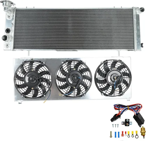 Descripción: Este radiador de aluminio está diseñado para proporcionar la máxima eficiencia de enfriamiento para evitar fallas prematuras del motor. Su aluminio ligero y de alta transferencia de calor cuenta con un diseño de tubo y aleta que, aumenta drásticamente la superficie que permite que el calor se disipe de manera más eficiente. Este radiador de aluminio es al menos un 40% más eficiente que los de stock. Lo más importante es que tiene una capacidad mucho mayor para refrigerante que los de stock, lo que significa que su sistema de enfriamiento será más eficiente y será más resistente a las sobretensiones de temperatura en aplicaciones de carreras. Radiador: 100% nuevo y nunca ha sido utilizado. Hecho de aluminio AA5052 completo de alta calidad. Mayor y mayor capacidad para refrigerante que las unidades de stock Diseño de carreras ligeras de 3 filas Tamaño del núcleo: 785 x 278 mm (30.91" x 10.95") Entrada/Salida: 1.25" / 1.50" Ajuste o reemplazo de equipo original atornillado directo Mejora la temperatura de enfriamiento de 35% a 45% Se recomienda una instalación profesional No incluye instrucciones (idioma español no garantizado). Ventilador delgado de 10 pulgadas: 12 V, 80 W. ≤6 AMP DRAW 6 cuchillas Color: negro Diámetro del ventilador: 12.050" Grosor del ventilador: 2.36" CFM máximo del ventilador: 800 CFM RPM máximas del ventilador: 2400±10% RPM Kit de relé de termostato: Ajuste universal para cualquier vehículo automotriz y ventilador eléctrico. Se activa conectando a tierra ventiladores eléctricos a temperatura preestablecida. Temperatura de encendido de 180'F, temperatura de apagado de 165'F. Sonda de latón roscada NPT de 3/8" con adaptador NPT de 1/2" incluido. La sonda típicamente enrosca en el radiador, la salida de agua o el colector. El paquete incluye: 1 radiador de aluminio. 1 funda de aluminio. 2 ventiladores de 10 pulgadas (incluye kits de montaje). 1 kit de relé de termostato Como se muestra en las imágenes. Compatibilidad: Compatible con J-eep Cherokee Base Sport Utility 1991-1993 de 2 puertas Compatible con J-eep Cherokee Base Sport Utility 1991-1993 de 4 puertas Compatible con 1991-1993 J-eep Comanche Base Standard Cab Pickup 2-Door Compatible con J-eep Cherokee Briarwood Sport Utility 1991-1992 de 4 puertas. Compatible con J-eep Cherokee Classic Sport Utility 1996,98-01 de 4 puertas. Compatible con J-eep Cherokee Country Sport Utility 1991-1992 de 2 puertas. Compatible con J-eep Cherokee Country Sport Utility 1993-1997 de 4 puertas. Compatible con J-eep Comanche Eliminator 1991-1992 Pastilla de cabina estándar de 2 puertas Compatible con J-eep Cherokee Eliminator 1991-1992 Pickup de cabina estándar de 2 puertas Compatible con J-eep Cherokee Laredo Sport Utility 1991-1992 de 4 puertas. Compatible con J-eep Cherokee Limited Sport Utility 1991-92, 98-01 de 4 puertas. Compatible con 1991-1992 J-eep Comanche Pioneer Standard Cab Pickup 2-Door Compatible con J-eep Cherokee SE Sport Utility 1994-2001 de 2 puertas/4 puertas. Compatible con J-eep Cherokee Sport Utility 1994-2001 de 2 puertas/4 puertas.