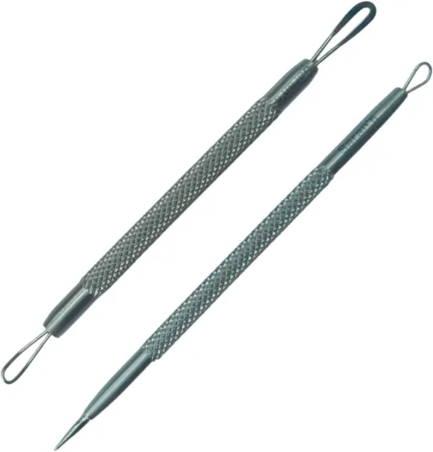 2 piezas de eliminación de puntos negros. Acero inoxidable, agarre antideslizante, fabricado con calidad de grado quirúrgico. Empaquetado en un fácil de llevar.