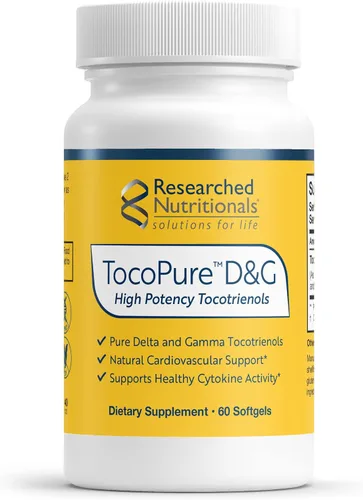 Researched Nutritionals TocoPure D&G - Vitamina E Tocotrienoles - Suplemento antioxidante para apoyar el metabolismo celular, los lípidos y la salud