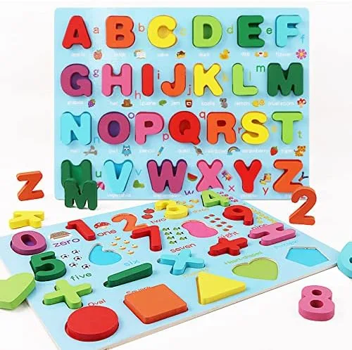 Gráficos alfanuméricos cognitivos: 26 rompecabezas del alfabeto inglés, rompecabezas de 5 formas, rompecabezas de 10 números, 5 símbolos de cálculo, colores brillantes y piezas de madera natural duraderas, cultivan gráficos alfanuméricos del bebé capacidad cognitiva y de memoria. Pensamiento lógico y asociativo: este juego de juguetes de madera es perfecto para mejorar las habilidades motoras finas, la coordinación ojo a mano, el pensamiento asociativo, la capacidad de pensamiento lógico, y también puede desarrollar la paciencia y la concentración de los niños, mantente alejado de los teléfonos móviles y la televisión. Madera más gruesa: nuestros rompecabezas de madera se actualizan a partir de rompecabezas normales y están especialmente diseñados con madera más gruesa y piezas más grandes que permiten a los niños un mejor agarre para que puedan concentrarse en sus trabajos. Seguridad absoluta: estos juguetes de madera están hechos de madera de alta calidad, resistente y duradera, ecológica, rigurosamente probada para la seguridad por el laboratorio internacional. Prueba Astm y Cpsia aprobada, cumple con las normas de seguridad para los Estados Unidos y la UE. Teñido con pintura no tóxica a base de agua. Idea de regalo perfecta: los rompecabezas para niños pequeños son una gran opción de regalo para un cumpleaños, Halloween, Navidad y otras festividades. No solo mejora las habilidades prácticas y las habilidades de pensamiento lógico, sino que también reduce el tiempo dedicado a ver televisión y jugar juegos, y mejora la relación emocional entre padres e hijos. Satisfacción del cliente al 100%: prometemos solemnemente que todos nuestros productos proporcionarán un reembolso del 100% de 180 días si hay algún problema de calidad. No tengas ninguna preocupación. Añádelo al carrito de compras inmediatamente y dale a tu hijo un regalo sorpresa. (Nota: Los niños menores de 3 años deben ser padres juegan juntos).