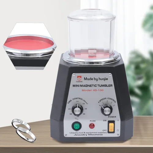 Material duradero y fiable: hecho de poliuretano, placa de hierro, cobre, aluminio e imanes, este vaso magnético es resistente al desgaste, resistente a la corrosión y duradero, asegurando su uso a largo plazo. Modelo: KD-100; Fase: 1; Tipo de montaje: Independiente; Fuente de alimentación: Eléctrico con cable; Estándar de enchufe: Estándar de EE. UU.; Temporización: 10-60 min; Velocidad: 4 engranajes (2000 rpm, 2500 rpm, 3000 rpm, 3500 rpm); Voltaje: 110 V; Potencia: 0.2KW. Potente rendimiento: el mini vaso magnético utiliza su distribución única de campo magnético, lo que resulta en un efecto magnético fuerte y estable. En comparación con la máquina pulidora con el campo magnético unidireccional general, la aguja magnética y la tasa de fricción de la pieza de trabajo aumentaron varias veces. Fácil de ajustar: puedes girar la perilla en el panel de control para ajustar el tiempo (10-60 minutos) y 4 velocidades (2000 rpm, 2500 rpm, 3000 rpm, 3500 rpm), lo que es conveniente. Especialmente para la forma compleja, grietas porosas, roscas internas y externas, no dañará la superficie de la pieza de trabajo y afectará la precisión. Haga que la pieza de trabajo sea suave y limpia inmediatamente, dándole un nuevo aspecto. Uso sencillo: solo tienes que poner tus joyas (no incluidas), alfileres de bruñido, agua y agente de pulido especial (no incluido) en un cubo de pulido, y luego presionar el botón "ON", lo que es simple. Este vaso magnético se puede utilizar para procesar algunos anillos con piedras intactas, como circonitas cúbicas (cz), rubíes, zafiros y diamantes. Varias aplicaciones: el vaso de joyería es adecuado para circonita cúbica (CZ), rubí, zafiro, diamante, oro, plata, cobre, aluminio, zinc, magnesio, hierro, acero inoxidable, plástico duro, materiales no metálicos, etc. Se puede utilizar para pulir, eliminar óxido, eliminar puntos negros, molienda fina, mecanizado áspero, biselado, recorte de bordes, etc.