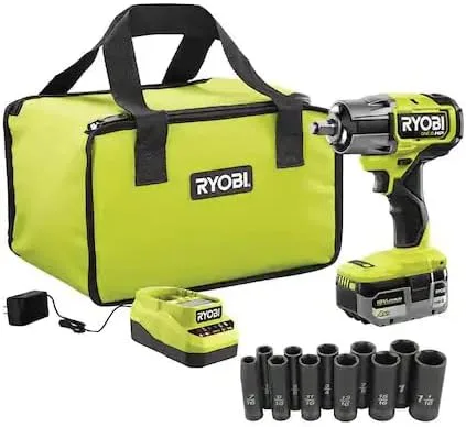 RYOBI ONE+ HP 18V inalámbrico sin escobillas 4 modos 1/2 pulgadas. Kit de llaves de impacto con enchufes, batería de 4.0 Ah y cargador