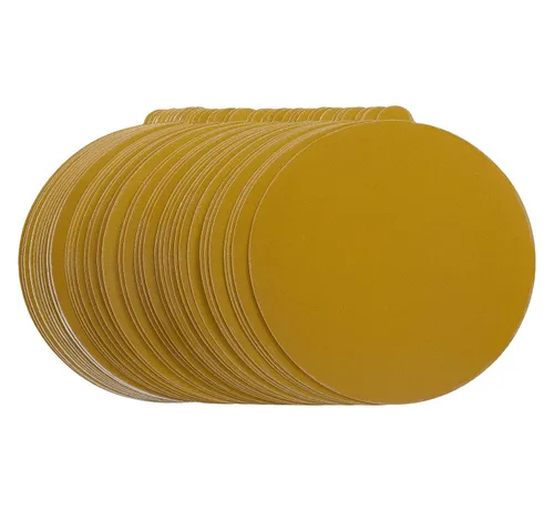 Especificaciones: Tamaño: 6 pulgadas Grit: 320 Material: Grano de óxido de aluminio premium Cantidad: 50 piezas El paquete incluye: 50 discos de lija PSA de 6 pulgadas de grano 320