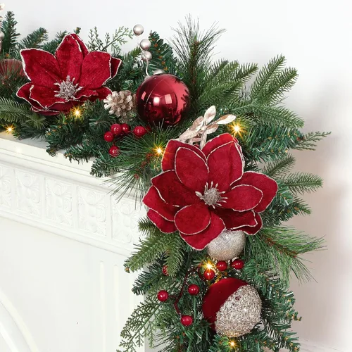 【Decoración navideña perfecta】Adorna tu hogar con nuestra exquisita guirnalda de Navidad iluminada de 8.9 pies, bellamente decorada con tiras de luces LED multicolor, piñas, bayas doradas, adornos de bolas de Navidad y flores de pascua artificiales color rojo champán dorado. Esta guirnalda festiva de Navidad iluminada está diseñada para mejorar tu ambiente festivo, llevando el espíritu de la Navidad a cualquier espacio. 【8 modos de iluminación diferentes】Elige entre intermitente, centelleo, ondas, secuencial, brillo lento, persecución, desvanecimiento lento y encendido constante para tu guirnalda de pino preiluminada. Siempre hay un modo que se adapte a tu estado de ánimo, añadiendo más alegría a tus celebraciones. Funciona con pilas y temporizador: puedes cambiar los modos de iluminación presionando el botón redondo en la caja de la batería, "A" significa luces blancas cálidas, "B" significa luces moradas. Funciona con 4 pilas AA (Nota: las baterías no están incluidas). Las luces cambiantes de color pueden permanecer todo el día y la noche, con una duración de la batería de ≥2 semanas. Además, la caja de la batería viene con una función de sincronización de 8 horas encendidas y 16 horas apagadas. 【Funda de batería multifuncional】Esta guirnalda de pino iluminada cuenta con memoria y funciones de ciclo. Para mayor comodidad, también puedes apagar las luces simplemente presionando y manteniendo presionado el interruptor durante tres segundos, brindando diversión inesperada. Guirnalda de alta calidad: la guirnalda de Navidad realista y gruesa de 8.9 pies está hecha de PVC, polietileno, ciprés y agujas de pino de alta calidad para una durabilidad excepcional y un aspecto natural. Además, es lo suficientemente versátil como para ser utilizado tanto en interiores como en exteriores durante todo el año 【Ampliamente aplicables】Ya sea en interiores o exteriores, nuestras guirnaldas de Navidad preiluminadas son la opción decorativa ideal para Navidad. Bucles integrados para una configuración sin complicaciones. Cuélgalos en mesas, repisas, puertas delanteras, salas de estar, ventanas, paredes, chimeneas y más para crear fácilmente impresionantes efectos decorativos. Son especialmente adecuados para Navidad y otras celebraciones festivas, así como para la decoración diaria para mejorar la estética de tu hogar.