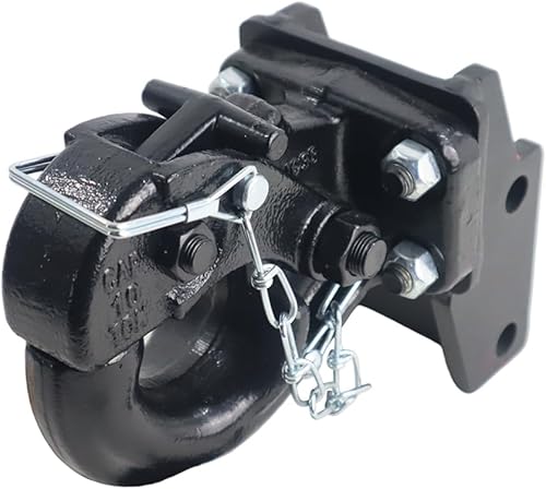 Gancho ajustable de 10 toneladas y placa de montaje: diseño de pernos juntos para más caída o subida. Pintle de acero forjado. Capacidad de 10 toneladas: capacidad de remolque de 20,000 libras y peso de lengua de 2,000 libras. Se adapta a anillos de lunette de 2-5" a 3": el gancho de púa se adapta a anillos de púa con 2-1/2" a 3" diámetro interno del ojo. Rango de caída varía según el enganche utilizado con: El rango de subida y caída cuando se usa con Shocker Air Hitch es de +2-1/2 pulgadas de elevación a 6-1/2 pulgadas de caída. El rango cuando se utiliza con enganches de cojín Shocker es de +4 pulgadas de elevación de 6-1/2 pulgadas de caída a y el soporte de bola sólida XR es de +5.5 pulgadas de elevación a 10.5 pulgadas de caída. Ancho de montaje: 3-5/8" de ancho OD para adaptarse a un canal de identificación de enganche de 3-3/4" con un patrón de orificio central de 2" para pasador de 5/8" para enganches de parachoques Shocker. Placa de montaje de tamaño estándar: El espaciado vertical del agujero de la placa de montaje es de 1.75" y el espaciado horizontal del agujero es de 3.375". Se adapta a los enganches de parachoques Shocker: funciona con enganches de parachoques Shocker Air, Streamline y serie HD, enganches de la serie Shocker XR y enganches de amortiguación de la serie Impact. Se adapta al canal de enganche de parachoques Shocker de 3-3/4 pulgadas.