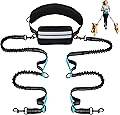 Correa de perro manos libres con bolsa, correa para perro para 2 perros con doble asa, cinturón retráctil para perros para caminar, correr, trotar,