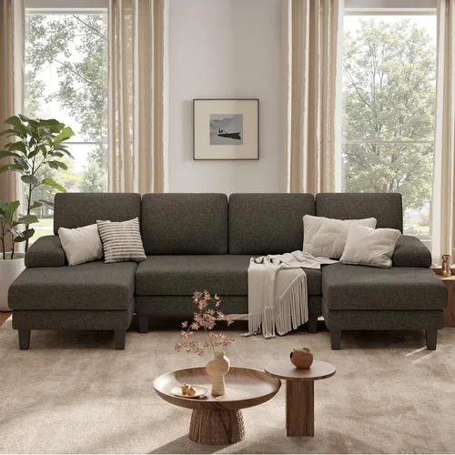 Sofá doble en forma de U: el sofá combinado cuenta con un diseño clásico en forma de U con líneas modernas y limpias. El sofá cama doble añade comodidad a la sala de estar. Marco de madera resistente: el respaldo está hecho de marco de metal para garantizar el apoyo y la durabilidad. El marco del asiento está hecho de madera maciza resistente para garantizar la carga y la estabilidad. El respaldo está hecho de marco de metal para garantizar soporte y durabilidad. Material cómodo: el sofá modular clásico está hecho de tela de lino para una comodidad transpirable. Los cojines están hechos de una combinación de resorte y esponja de alta elasticidad para proporcionar un asiento cómodo y un apoyo eficaz. Muebles de sala de estar: este sofá de sala de estar con sofá biplaza es un práctico mueble para apartamentos, salas de estar, lofts y oficinas. La altura de la pata de 6.5 pulgadas del sofá es adecuada para una barredora para una limpieza más fácil. 【Entrega en dos cajas】El sofá se entrega en dos cajas y solo requerirá un montaje simple. Los cojines están empaquetados al vacío y tardarán al menos 48 horas en recuperar la forma original y la plenitud después de abrirlo. Proporcionamos un manual de instalación y herramientas para tu comodidad.