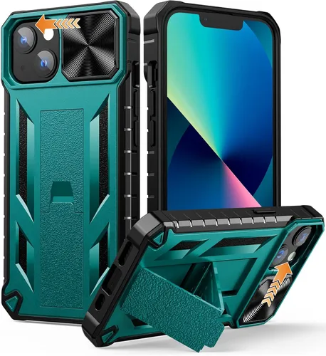 Compatibilidad: Tough Armor Case Defender Funda protectora de grado militar resistente diseñada para iPhone 13 y iPhone 14. Nuestra funda de vanguardia Armor es adecuada para iPhone 13 (2021) y iPhone 14 (2022), iPhone 16e (2025) de 6.1 pulgadas. Soporte integrado: la funda a prueba de golpes para Apple 13, Apple 14, Apple 16e con soporte flexible plegable integrado vertical y horizontal que lo hace conveniente para leer, ver películas, jugar juegos, navegar por la web y charlar cara a cara con amigos cuando lo necesites Protección mejorada de la cámara deslizante antiarañazos: delicada cubierta deslizante para lente de cámara, más alta que la cámara elevada, protege la cámara de tu teléfono Apple iPhone 13, iPhone 14, iPhone 16e de arañazos, colisiones, rozaduras e impactos. Diseño único de la cubierta deslizante de la cámara para ocultar la cámara perfectamente, lo que no solo aumenta la seguridad, sino que también tiene un sentido de tecnología. Puedes deslizarlo libremente Protección contra caídas de grado militar: prueba de caídas certificada, protección resistente. Esta funda está hecha con una parte trasera resistente de policarbonato duro mate y flexible termoplástico suave al tacto TPU amortiguador amortiguadores de goma y que proporciona una excelente protección a prueba de golpes y anticaídas para proteger tu iPhone contra caídas accidentales, golpes, golpes y arañazos Excelente agarre y diseño antideslizante: el marco de TPU procesado proporciona una sensación delicada al tacto y antideslizante. El parachoques antideslizante proporciona un excelente agarre y evita que tu teléfono se resbale de tu mano. Especialmente protección completa de la espalda con bordes texturizados y cubierta trasera de policarbonato duro resistente a los impactos. Funda de teléfono resistente con diseño de armadura, adecuada para correr, montañismo, camping o cualquier otro deporte al aire libre