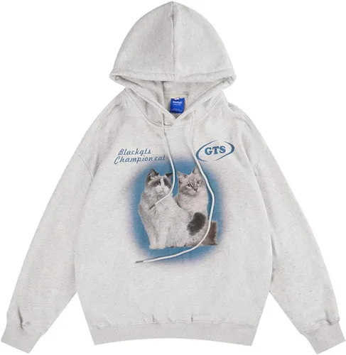 Sudadera con capucha para gatos Y2K con capucha para mujer, sudadera de gran tamaño para hombres, ropa estética Y2K