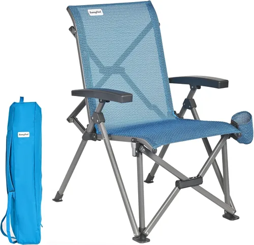 SUNNYFEEL Silla plegable para campamento, sillas ergonómicas resistentes con soporte de respaldo alto ajustable transpirable y soporte para tazas,
